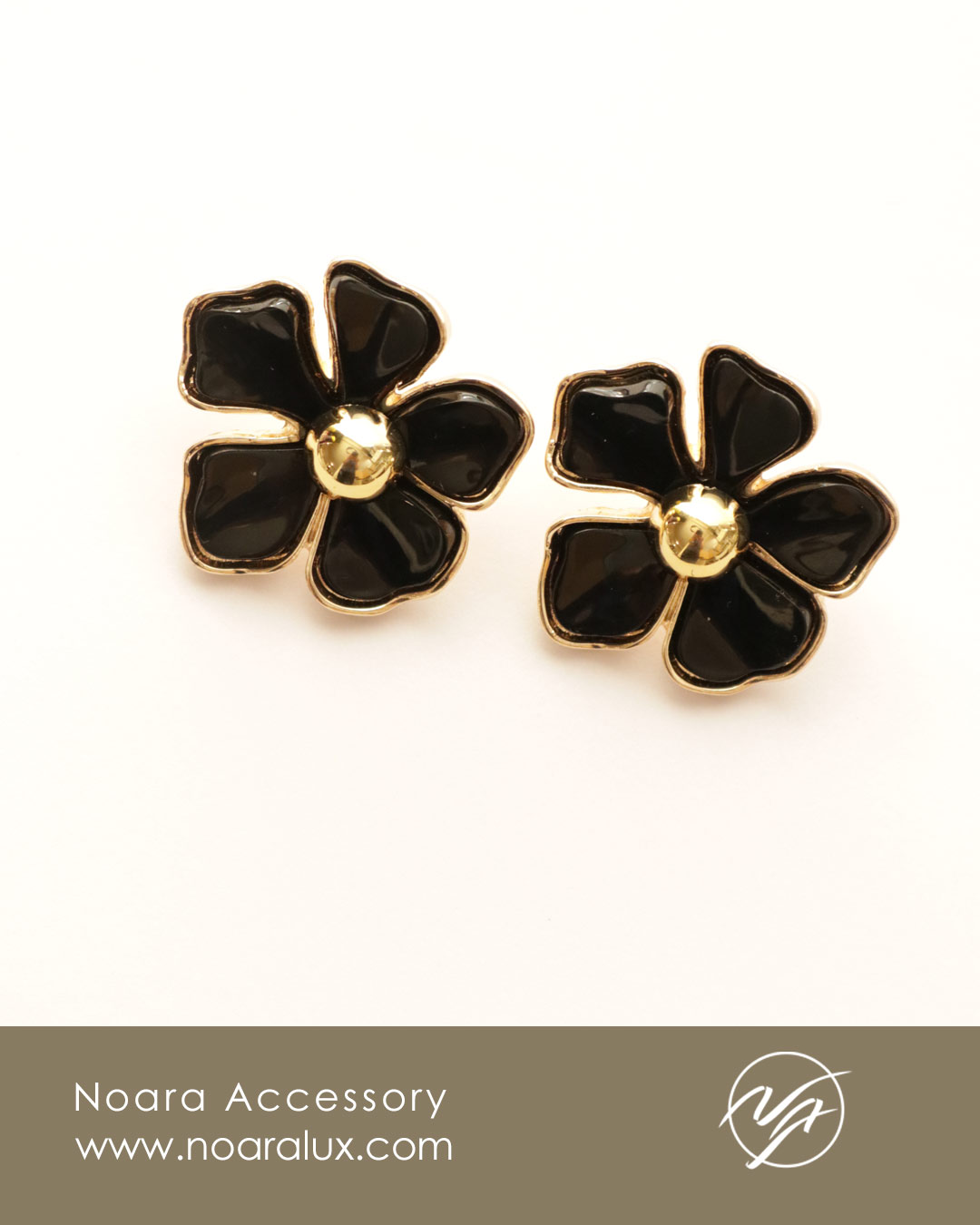 گوشواره مشکی و طلایی 5 برگ